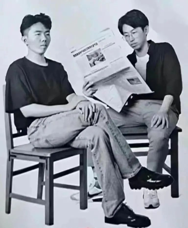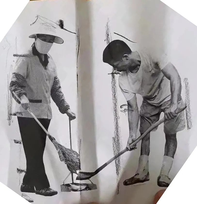 双人动态速写,女站姿(长发、右手挎包,左手插口袋),男坐姿。