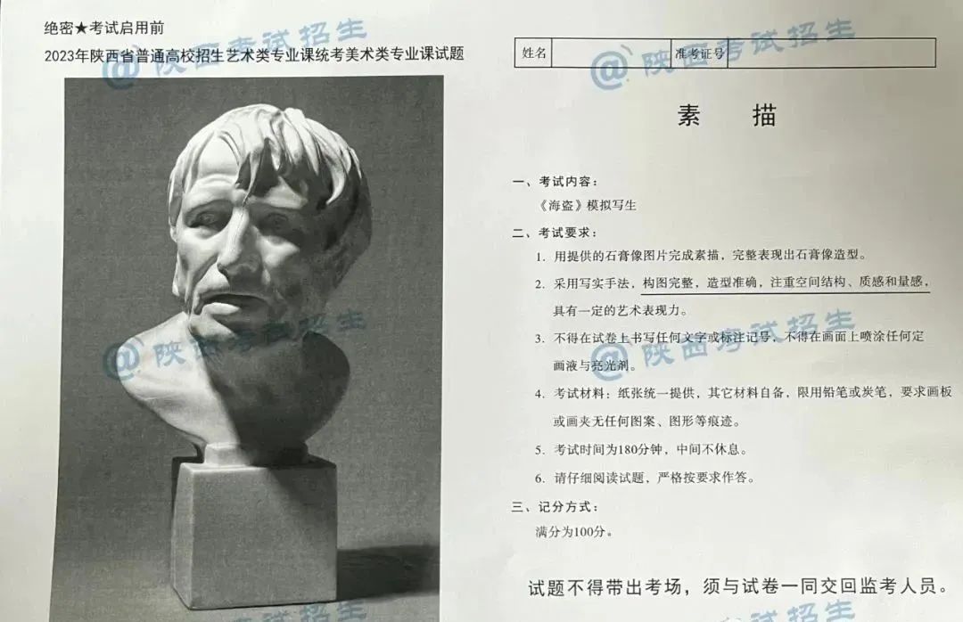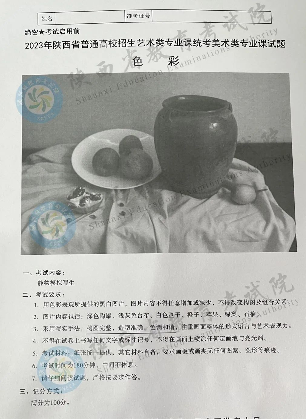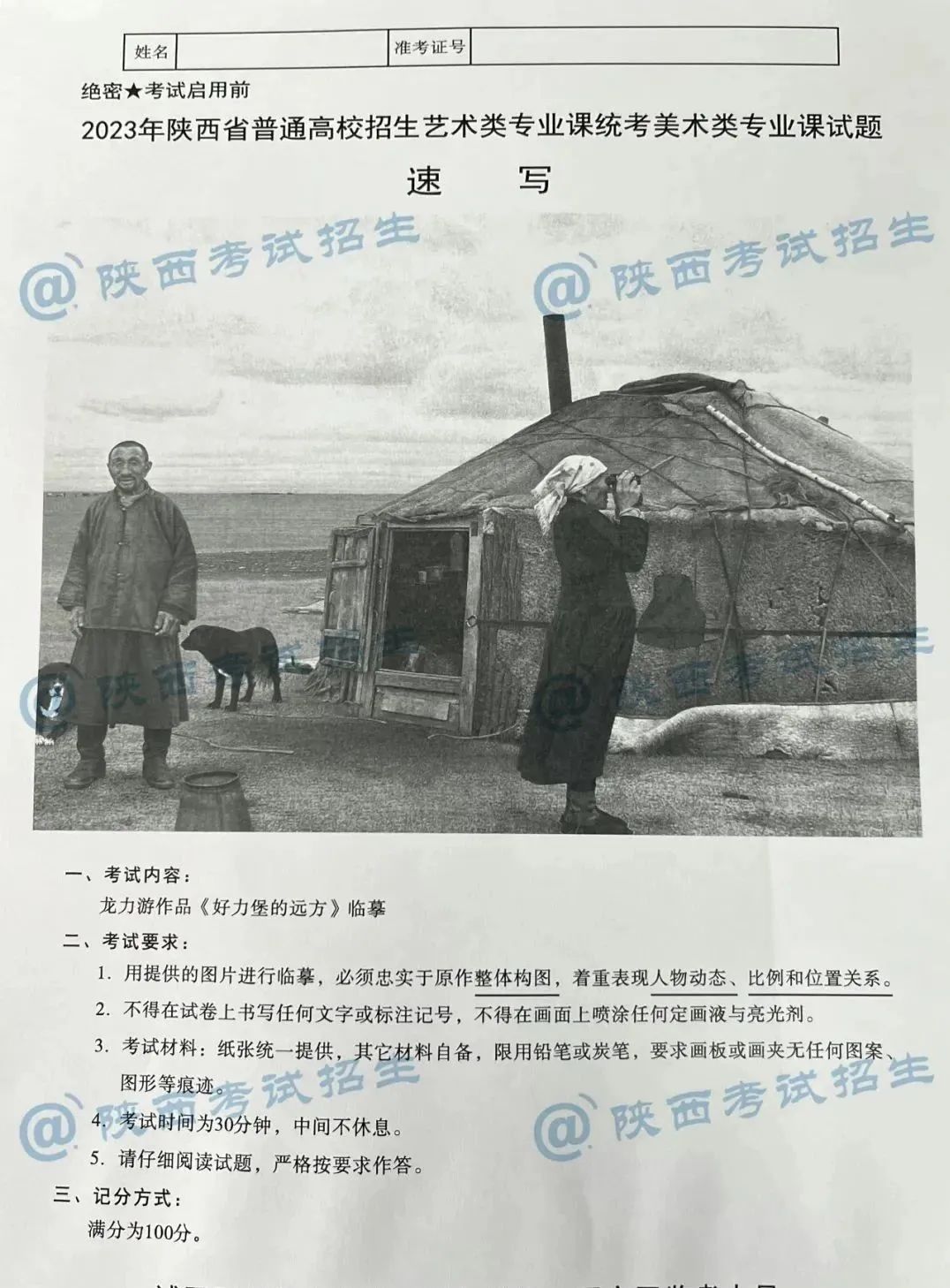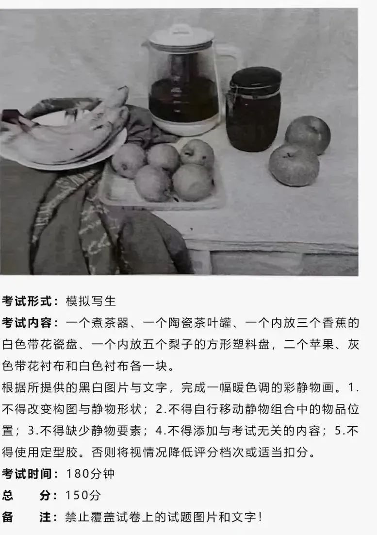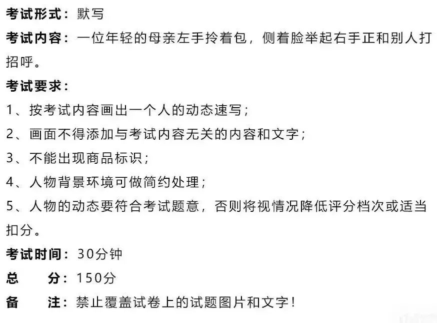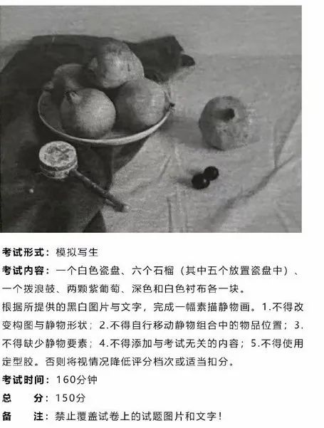 考试用具:限水粉、水彩形式表现;4开铅画纸。
