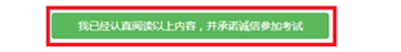 5.《考生须知》阅读完成后,请开始阅读《报考承诺书》,阅读完成后请点击“我已经认真阅读以上内容,并承诺诚信参加考试”。