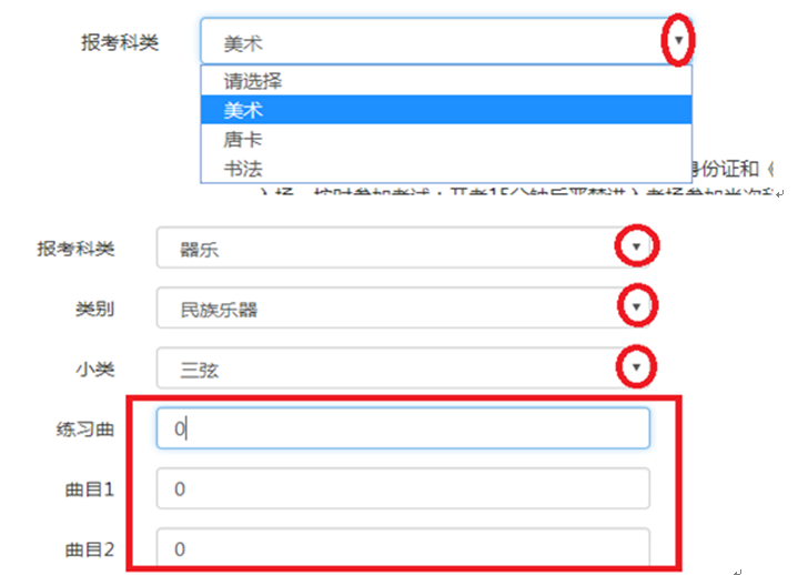 9.选择完成后,各类考生务必于页面下方选择“报考科类”等内容,完成后点击“我要报名”。如有修改需要,可对选择的“科类、类别、小类、曲目等信息进行修改”。报名页面灰色框内的信息不能修改,如发现错误,请联系进行高考报名的县区招办修改。