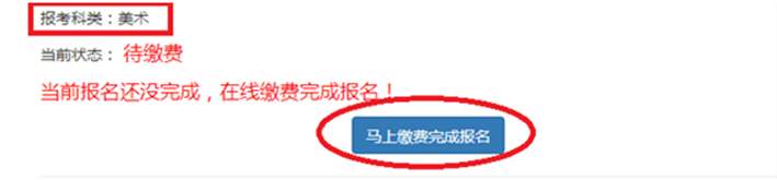 11.报名完成后,核对“报考类别”等内容,确认无误后点击“马上缴费完成报名”。