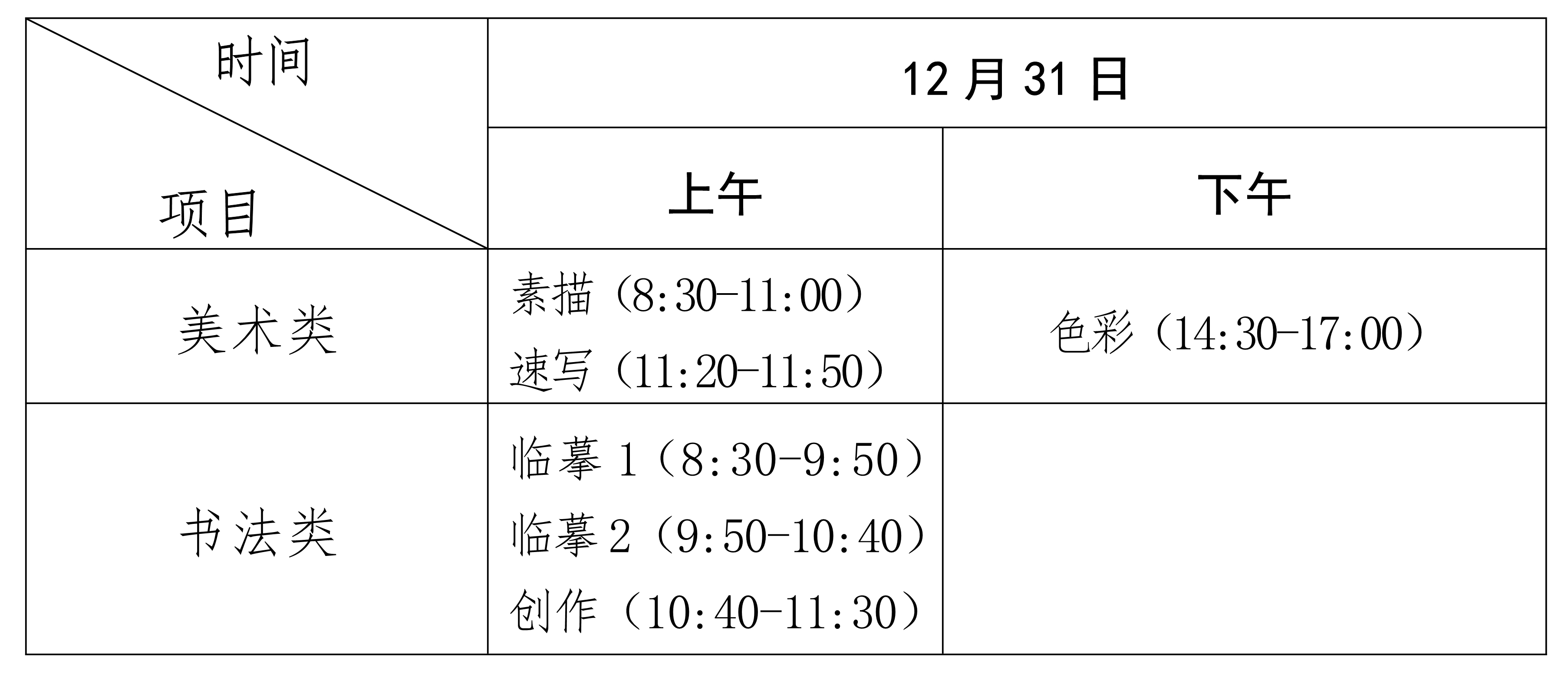 2.参加书法专业考试的考生自带毛笔、墨汁、画毡、黑色签字笔等用品。