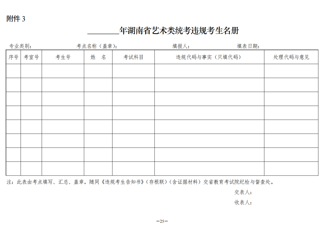 3.湖南省艺术类统考违规考生名册(样式)
