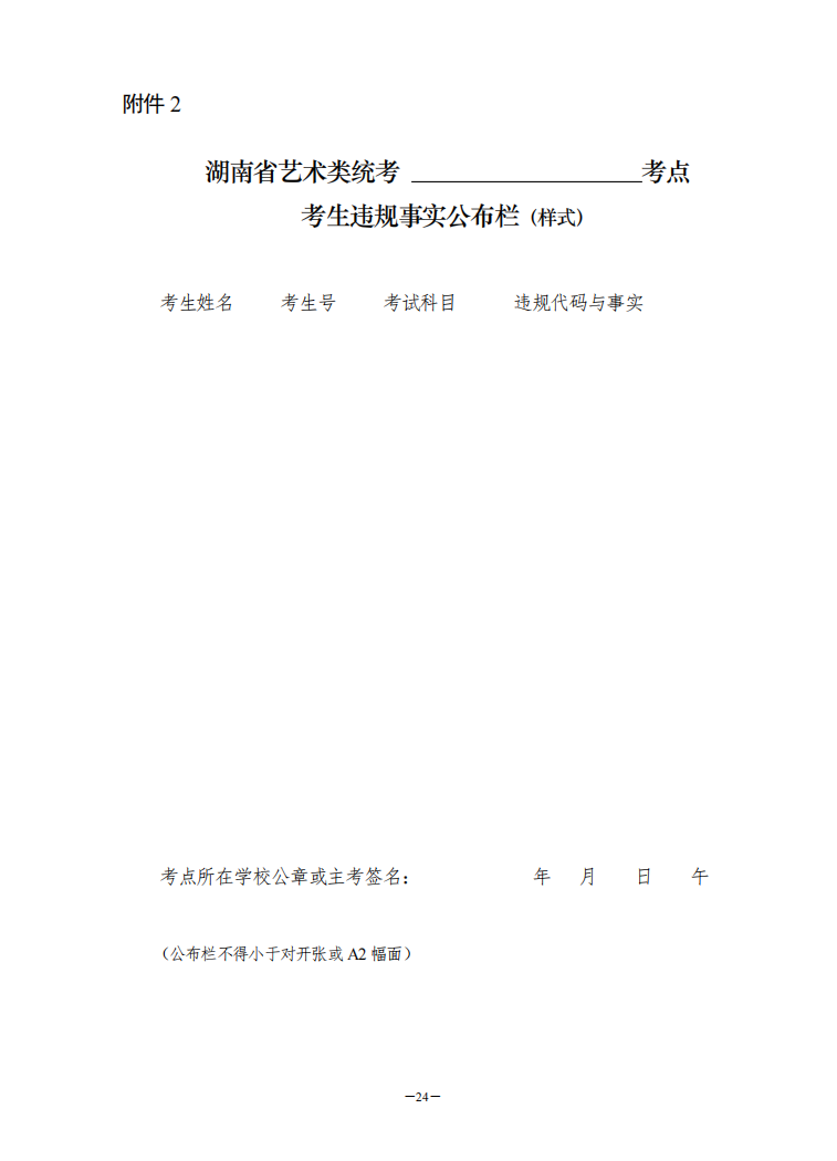 2.考点考生违规事实公布栏(样式)