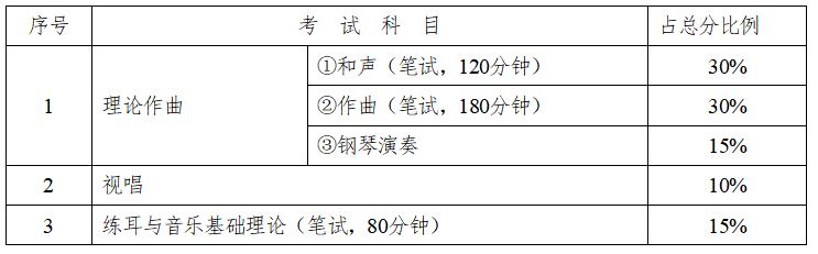 ②主科报考理论作曲类考生的考试科目