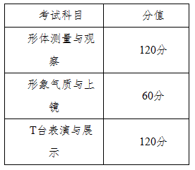 身高与形象50分、专业技能250分(演唱40分、台词70分、形体展示40分、表演100分),满分300分。