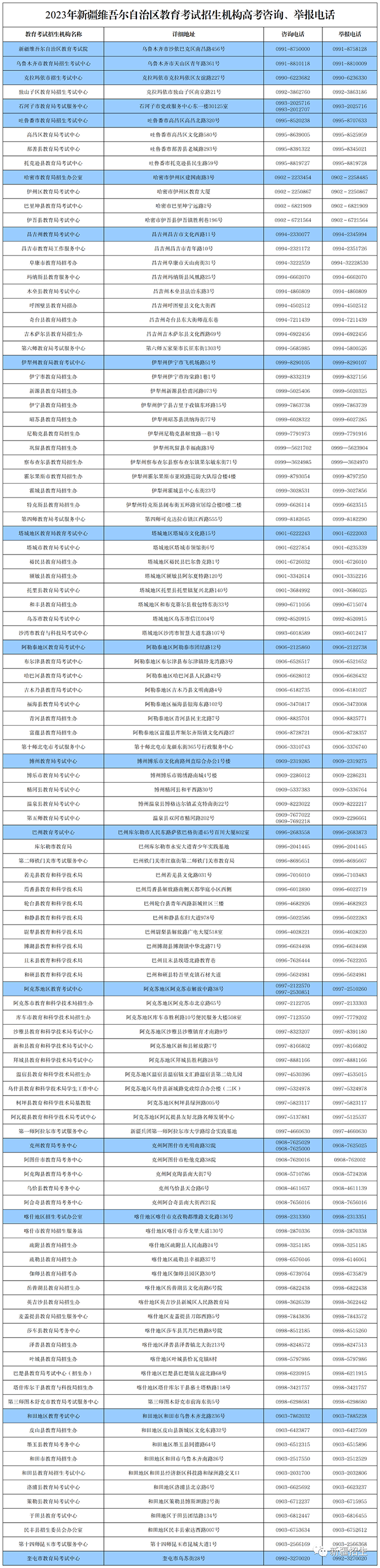 招生录取期间,全区各级教育考试机构开通咨询热线、举报电话等,现将电话公布如下