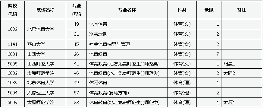 目前,我省提前体育本科、提前本科一批、面向脱贫地区招生“专项计划"第一批本科院校因生源不足或考生不服从专业调剂退档出现缺额。现予集中公布,公开征集志愿。