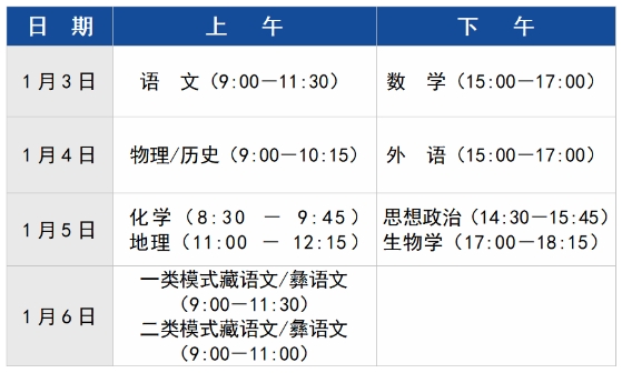 适应性演练测试时间为2025年1月3日至6日,具体安排如下: