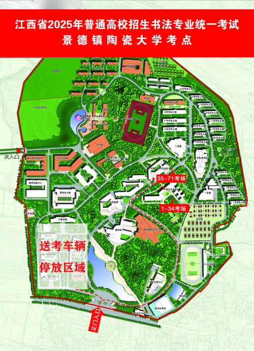 送考车辆从校大门进入,按指引有序停放到考场警戒线外周边停车位。司机、陪同人员请在停车区域内活动和等候,请勿进入其他区域。