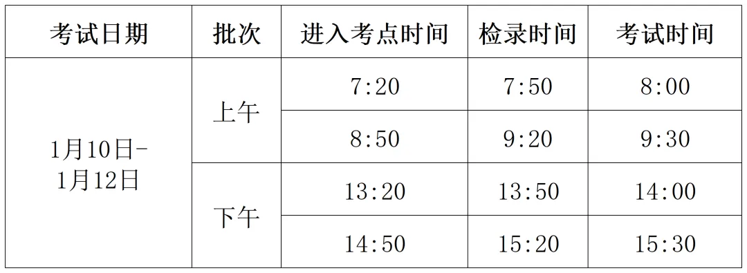 考生须严格按照准考证各科目考试时间分段进入考点,不得提前和延后。