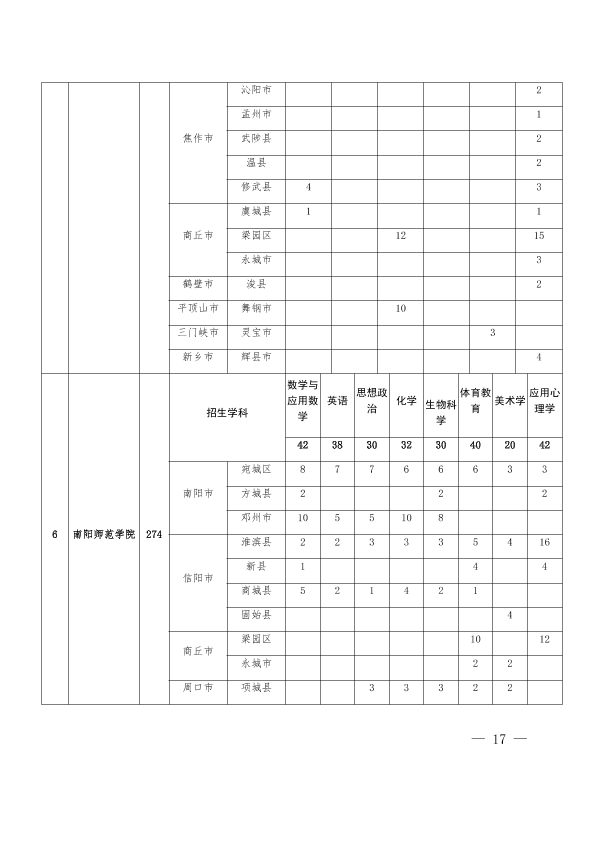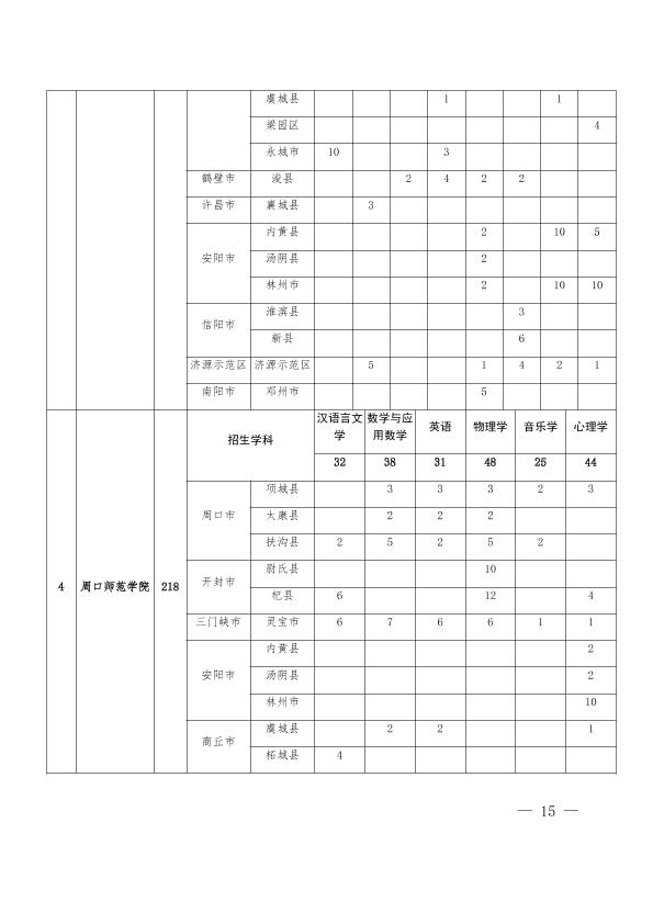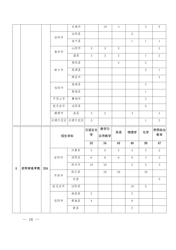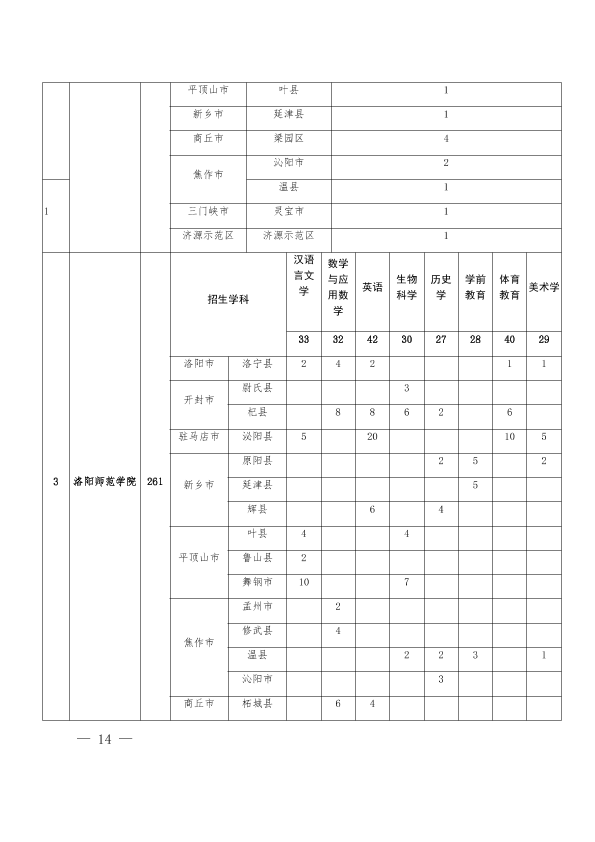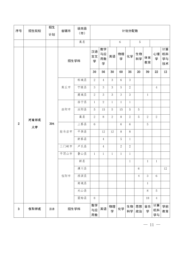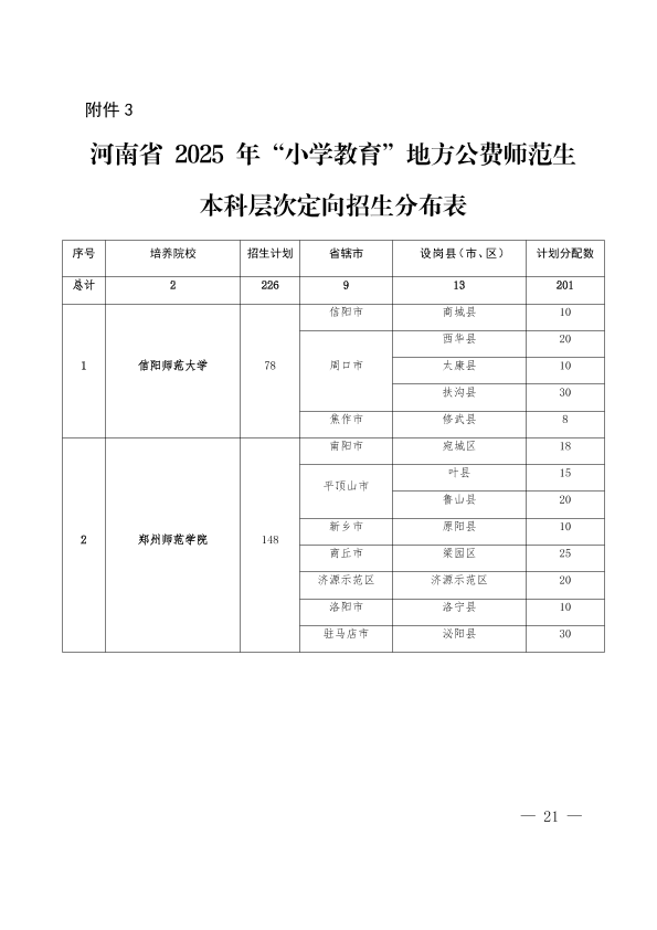 3.河南省2025年“小学教育”地方公费师范生本科层次定向招生分布表
