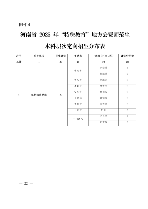4.河南省2025年“特殊教育”地方公费师范生本科层次定向招生分布表