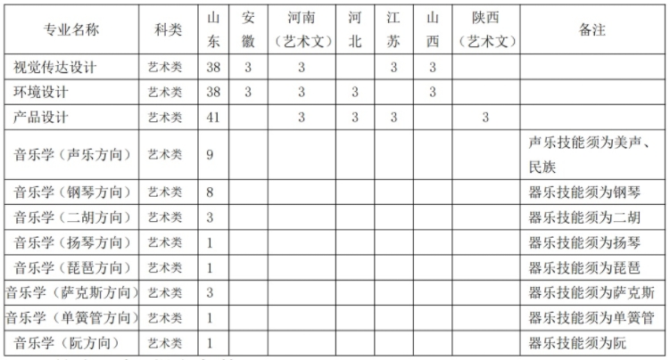 学校艺术类本科专业招生总计划数为180人,招生计划如下表: