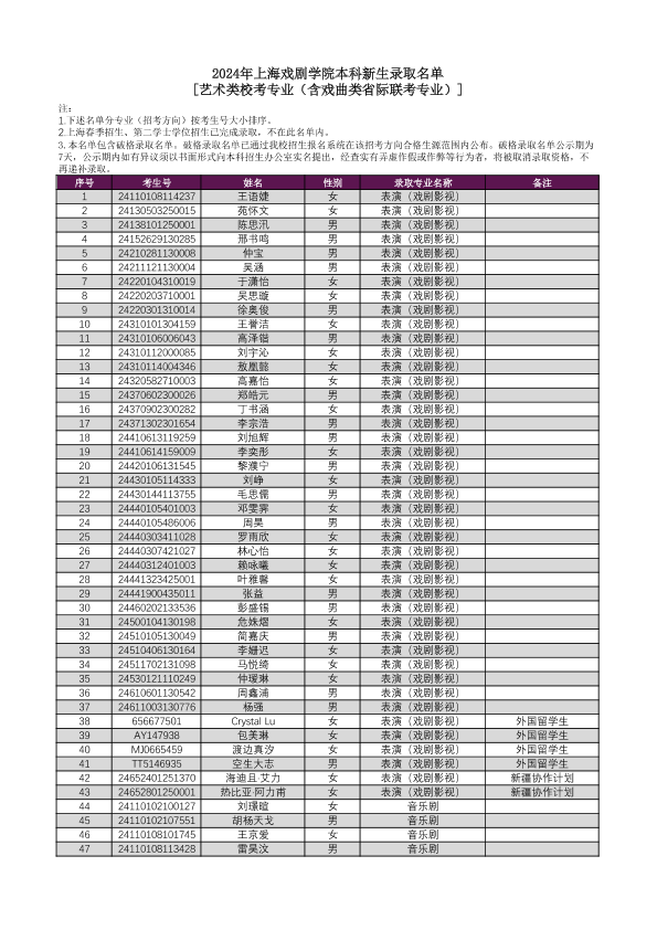 2024级艺术类统考批次及普通批次本科录取工作目前仍在进行中,新生录取通知书预计将于8月初陆续通过EMS中国邮政速递寄出,请于8月初通过“上海戏剧学院招生”微信公众号查询快递单号。