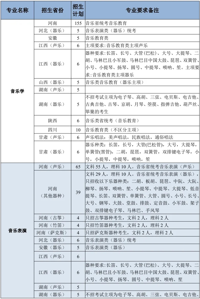 培养目标:本专业全面贯彻党的教育、文化方针政策,培养德、智、体、美、劳全面发展,具有基本的专业理论知识与较高的专业技能,具有较强的实践能力、学习能力和音乐表演能力,并具有基本的音乐基础教育能力,有创新精神能适应社会发展需要的应用型音乐人才。