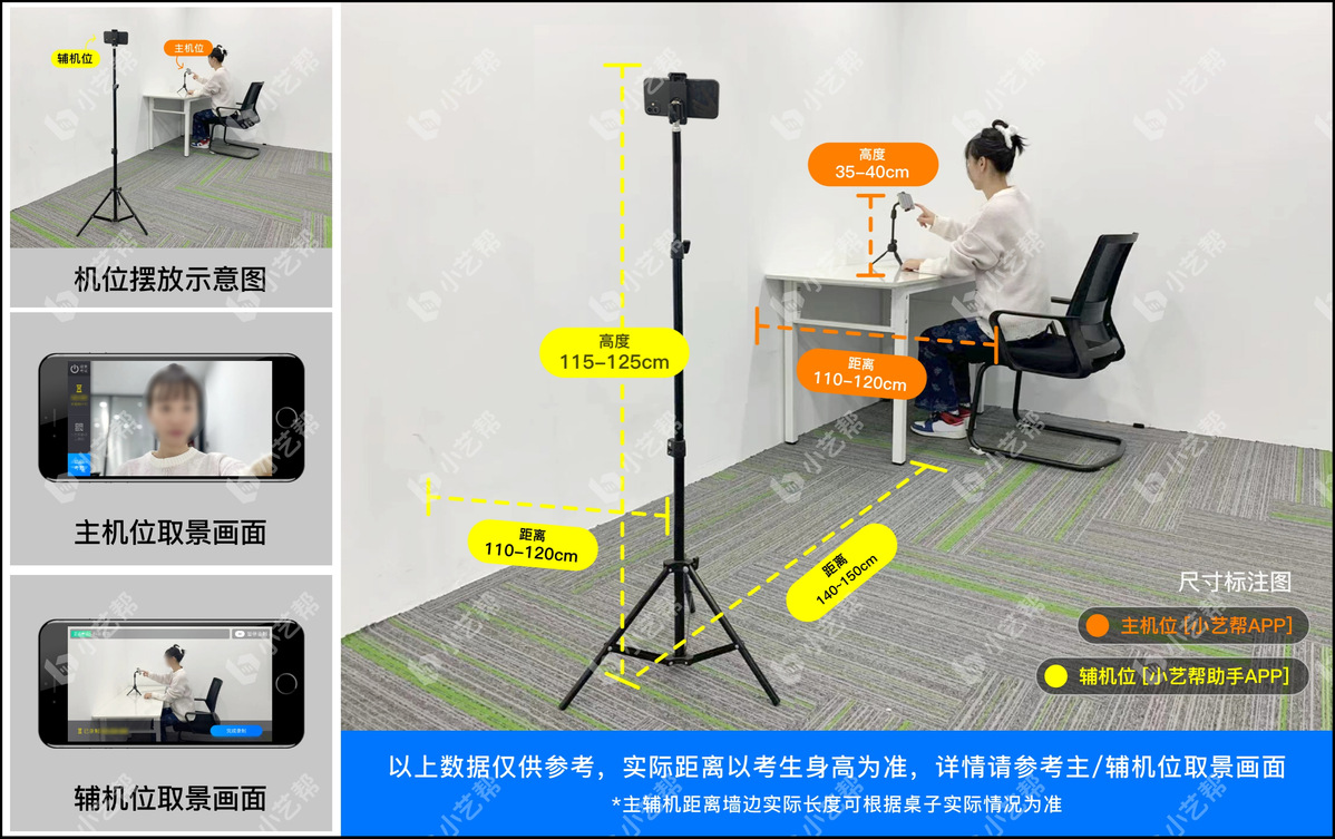 1. 考试终端为两部智能手机,考生仅可使用两部手机完成考试。采用双机位考试模式,一部手机用于考试作答(主机),一部手机用于考试实时直播监考(辅机)。主辅机可使用不同操作系统的手机。