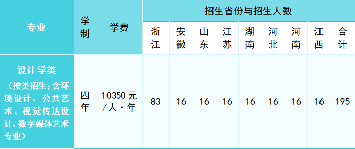 招生计划195名,艺术类分文理科的省份仅面向艺术类文科考生招生,不分文理科的省份不作文理科报考要求,分省计划如下:
