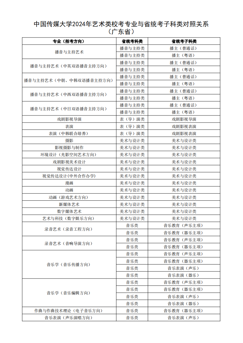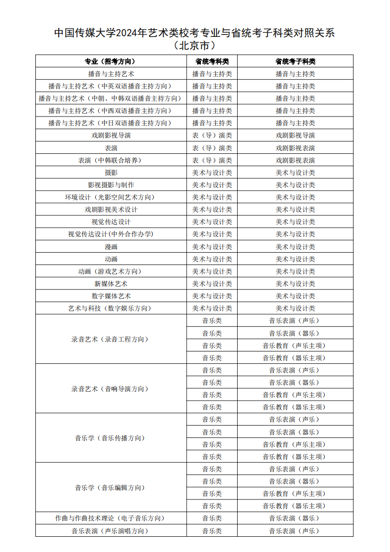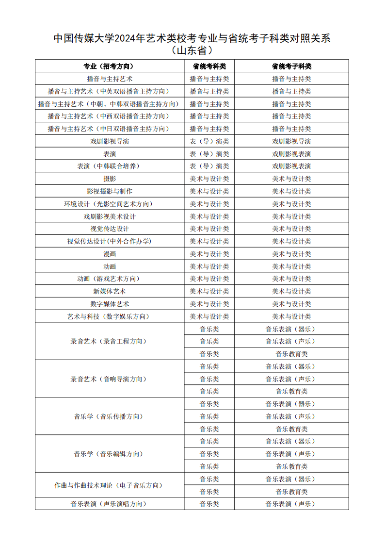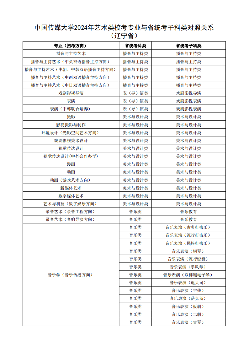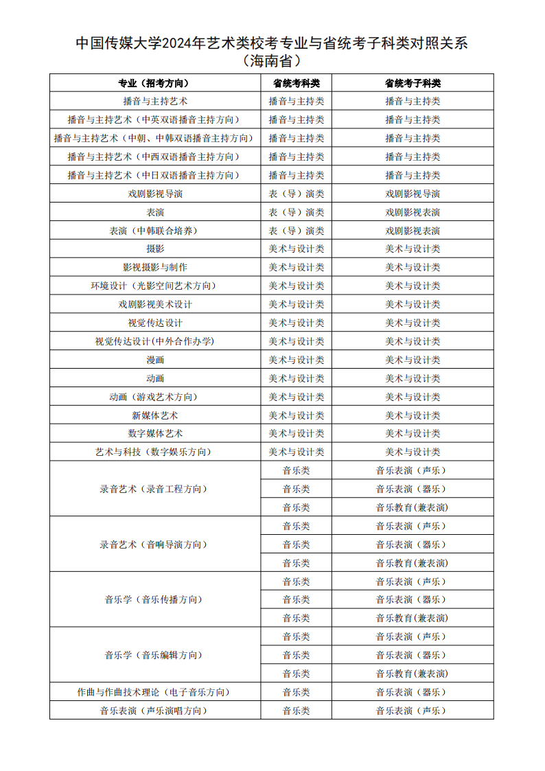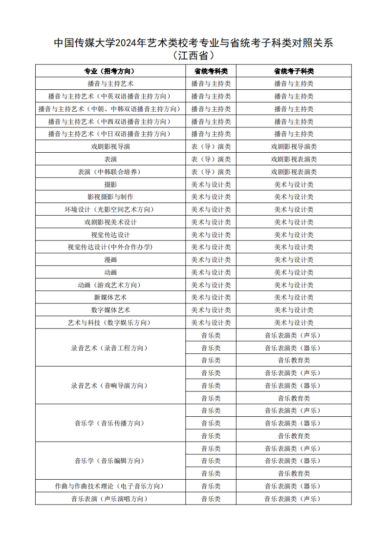 根据教育部相关文件规定,经各省级招生考试机构审核通过,现发布我校2024年艺术类校考专业与省统考子科类对照关系。