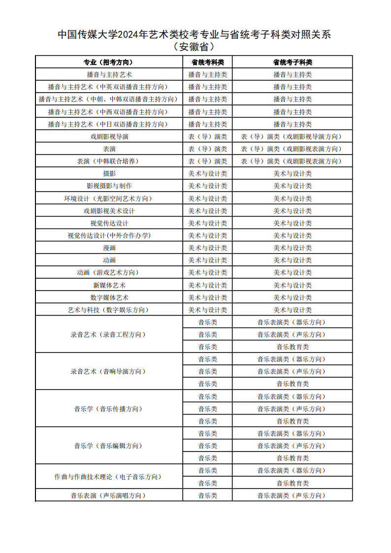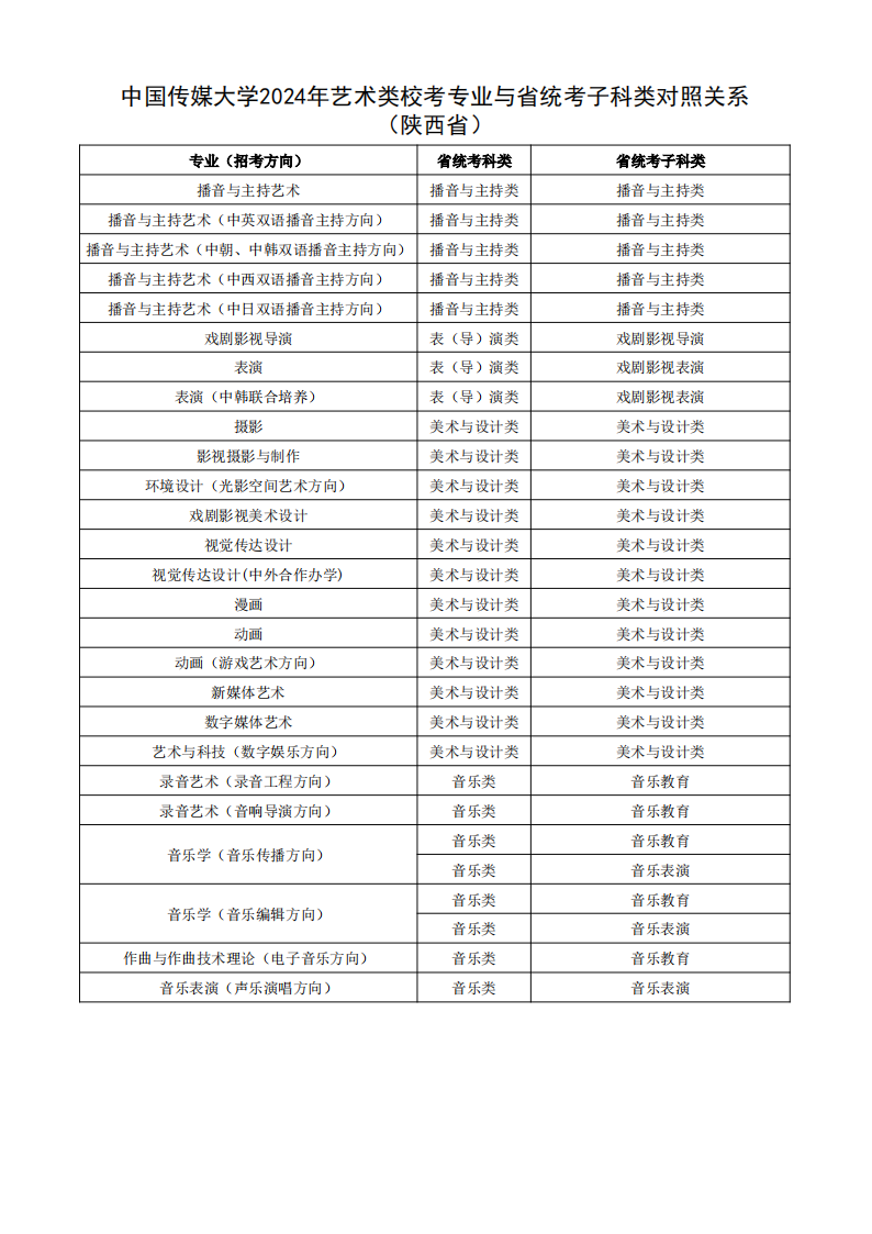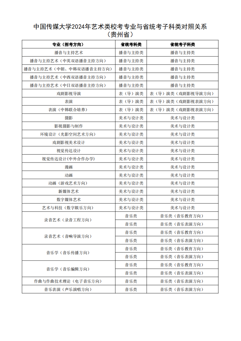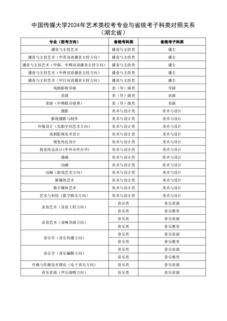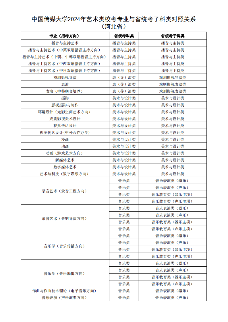 根据教育部相关文件规定,经各省级招生考试机构审核通过,现发布我校2024年艺术类校考专业与省统考子科类对照关系。