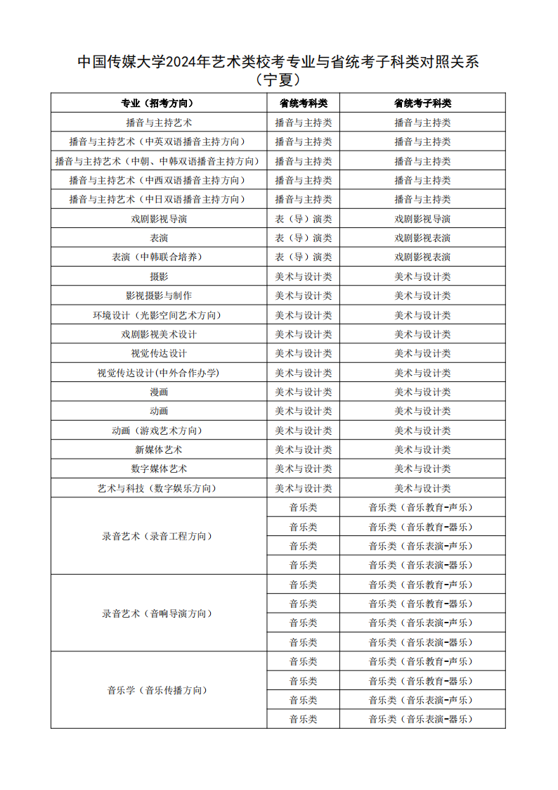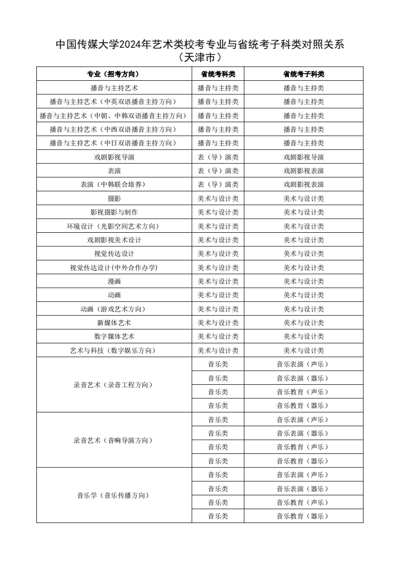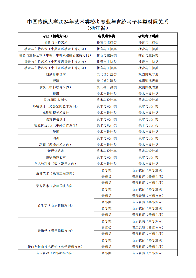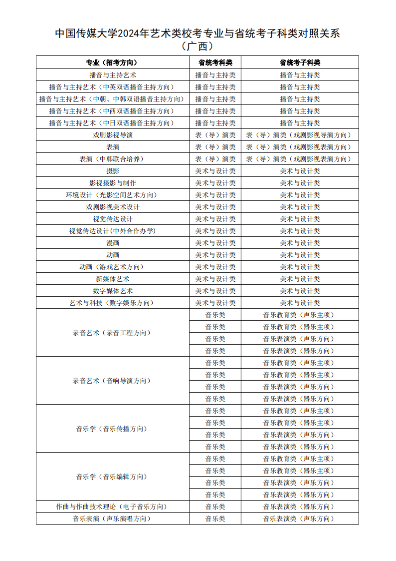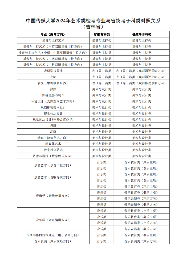 根据教育部相关文件规定,经各省级招生考试机构审核通过,现发布我校2024年艺术类校考专业与省统考子科类对照关系。