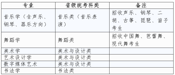 戏剧影视文学专业,依据高考成绩择优录取;音乐学、舞蹈学、美术学、艺术设计学、数字媒体艺术、书法学等艺术类专业,使用省级统考成绩作为专业考试成绩,依据专业考试成绩、高考成绩择优录取。