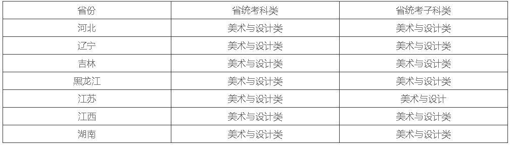沈阳工业大学2024年拟招生艺术类专业为 环境设计(130503),招生省份为河北、辽宁、吉林、黑龙江、江苏、江西和湖南,具体各省省统考科类与省统考子科类如下表所示: