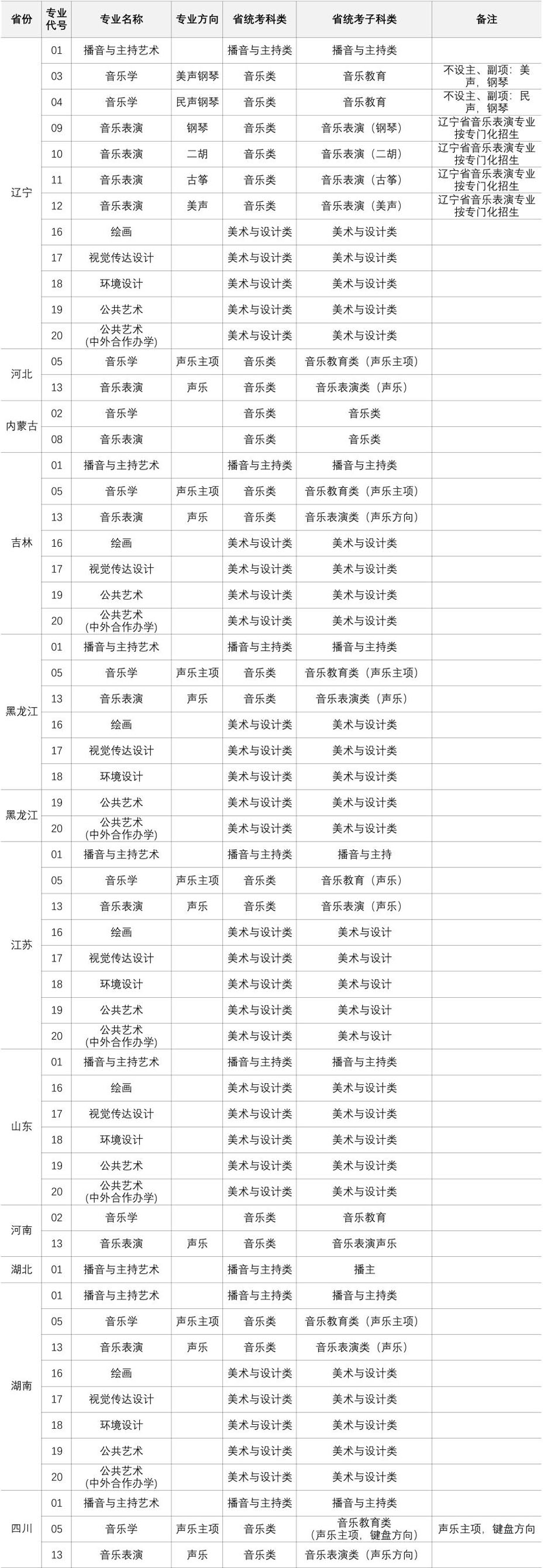 (此表仅为专业与省统考对照关系,具体招生专业、计划以2024年各省最终公布的招生计划为准。)