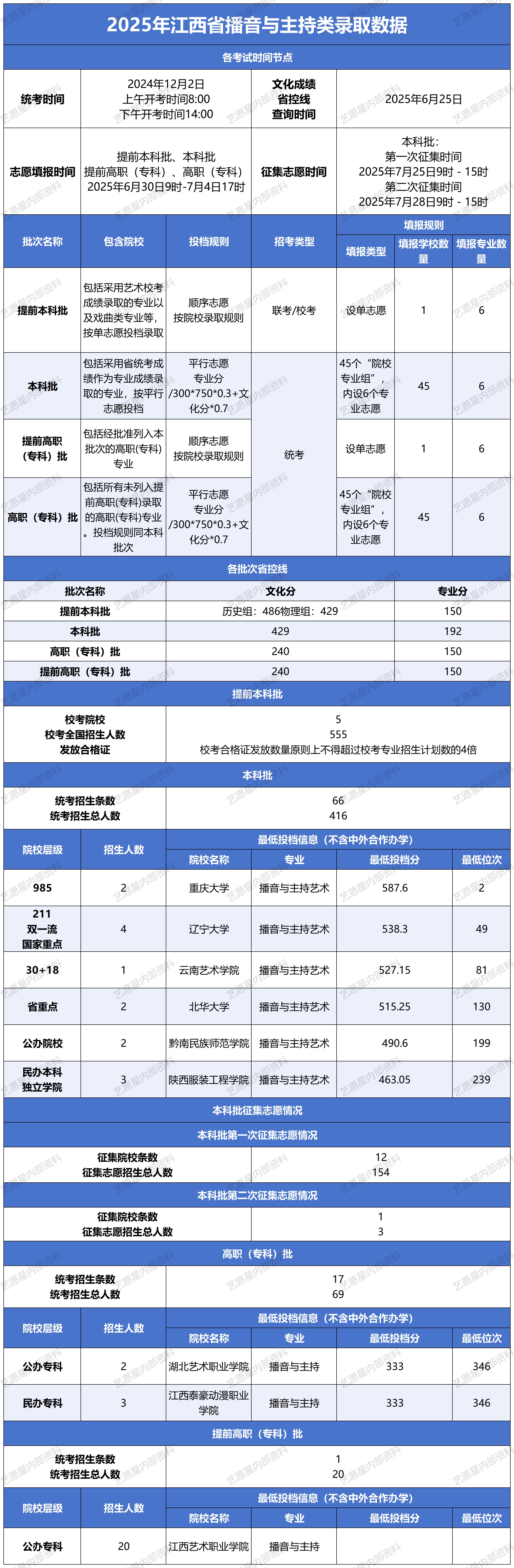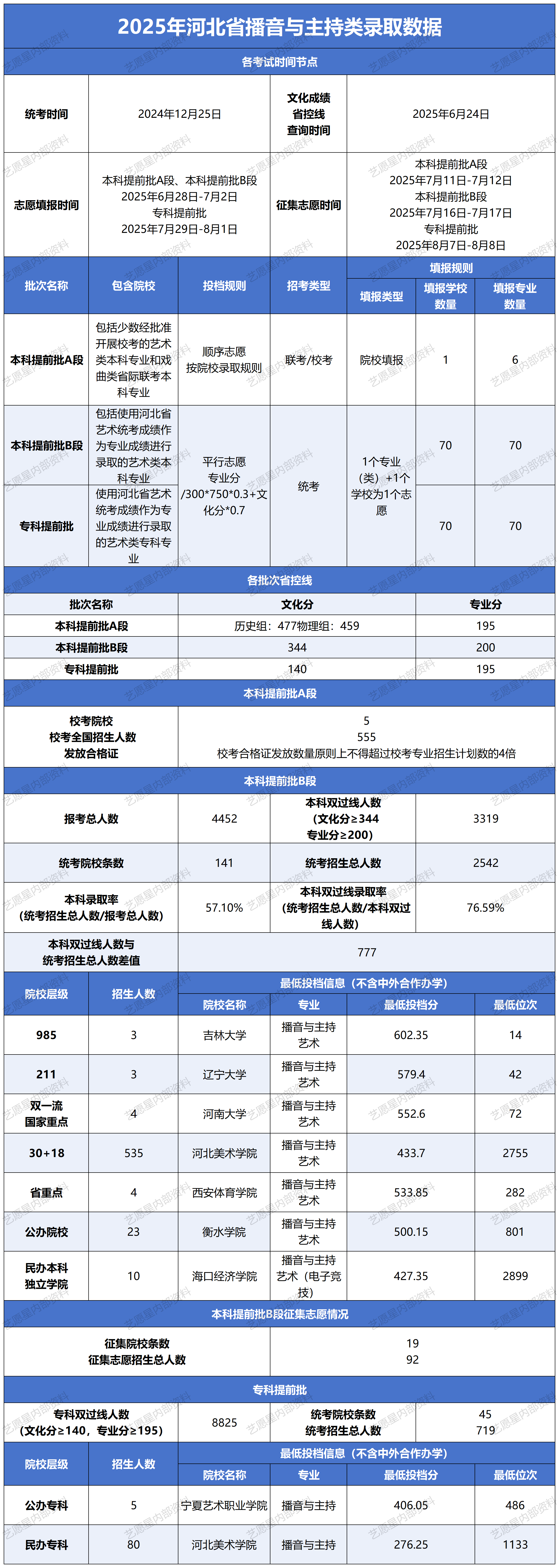 1、《艺愿星》所展示、公布、使用的数据均来源于各省教育考试院和高校官方公布的信息,提供的信息仅供您参考,请以各高校 或各省教育考试院 正式公布数据为准。