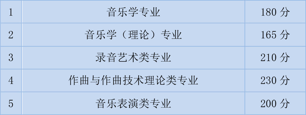 2.音乐类专业的本专科层次文化考试成绩录取控制分数线、本专科层次专业统考成绩录取控制分数线将在2022年音乐类招生专业类别计划确定后划定。