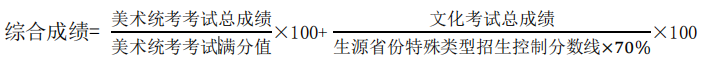 (一)美术类专业考生须取得省级美术类专业统考本科合格资格且统考成绩不低于满分值的 70%,考 生文化考试总成绩须达到生源省份艺术本科录取控制分数线且总成绩不低于生源省份本科一 批录取控制分数线的 70%,考生外语科目成绩不得低于 60 分(150 分制)。