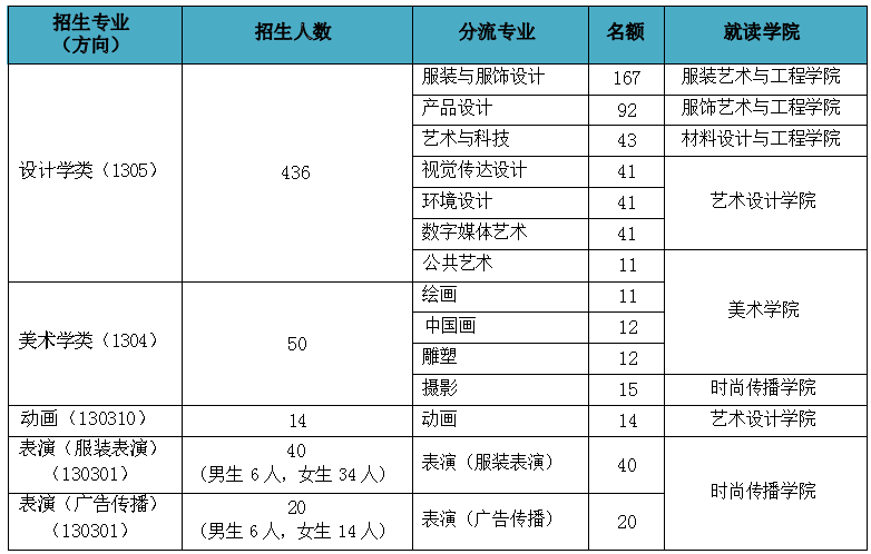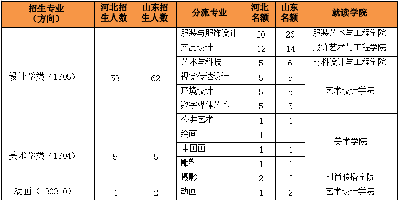 ①上表中设计学类、美术学类及动画专业的招生省份为除河北省和山东省以外的其它所 有省份。表演(服装表演)和表演(广告传播)专业的招生省份为全国所有省份。
