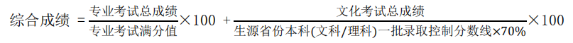 按照综合成绩分数优先、遵循志愿的原则从高分到低分择优录取。如果综合成绩相等, 依次按照专业考试总成绩、语文+数学+外语、语文+数学、语文+外语、语文、数学、外语科 目(单科150分制)成绩从高到低择优录取。