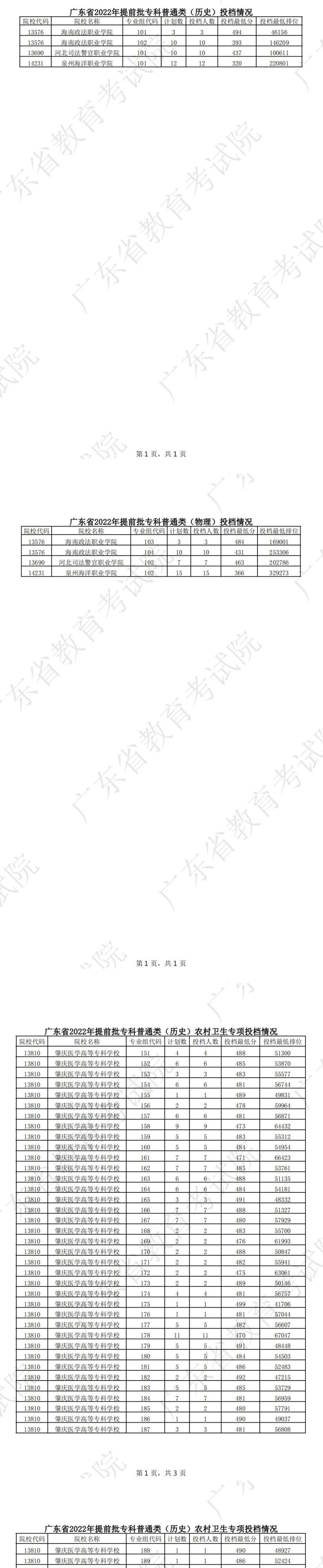 我省今年提前批专科已完成投档,投档情况如下。