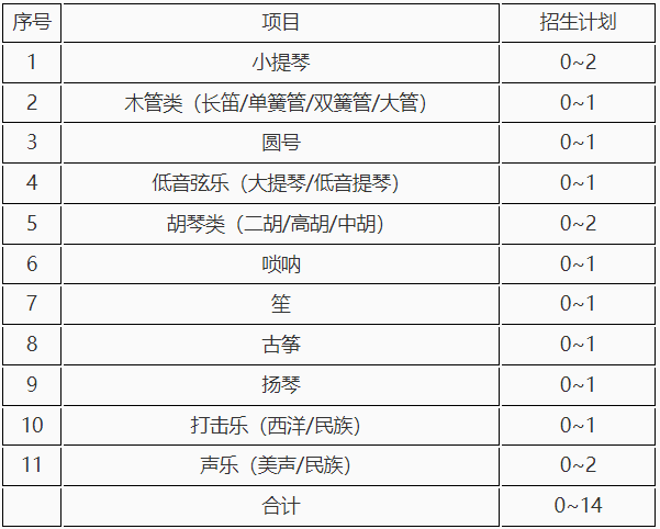 根据我校艺术团建设和发展需要,按照“择优录取、宁缺毋滥”的原则,设定2022年高水平艺术团招生计划不超过14人。具体计划如下: