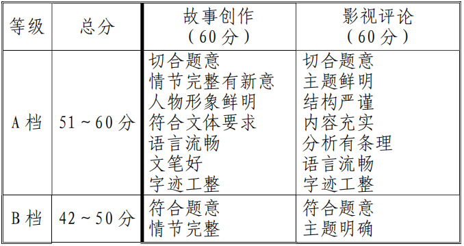 通过考生对电影、专题片、纪录片等影视作品以及影视 文化现象的分析、评论,考查考生对影视作品和特定影视文 化现象的感悟能力、鉴赏能力以及逻辑思维能力;考查考生 是否具备今后学习和将来从事本专业所必备的写作能力。