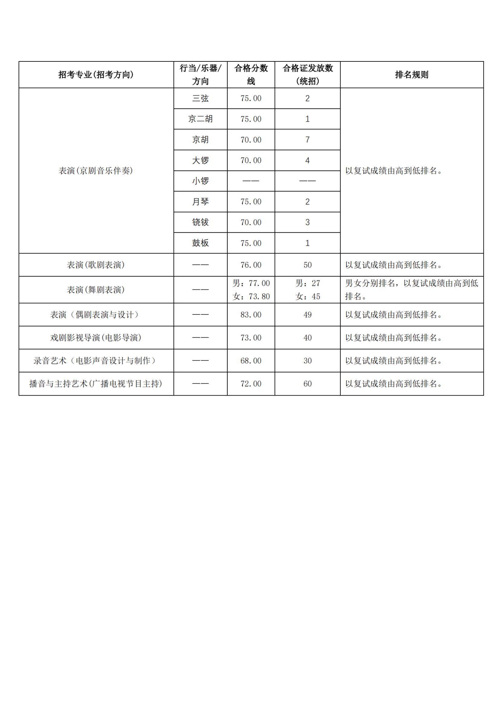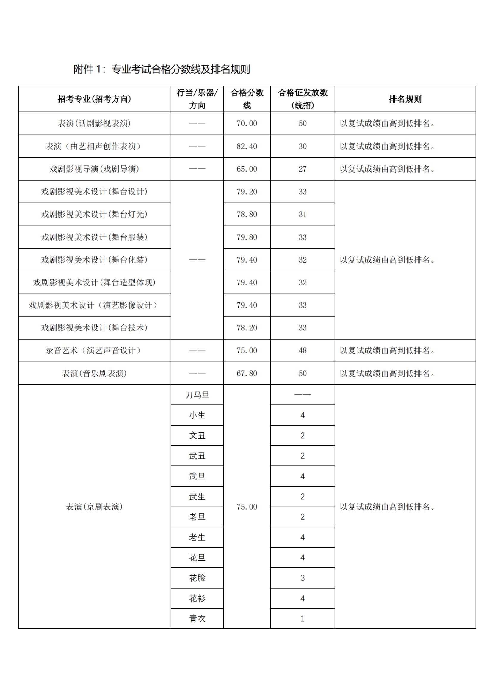 五、《2022年本科招生专业考试合格名单公示表》公示期限为自发布之日起7天,各专业(招考方向)合格分数线及排名规则见附件1。