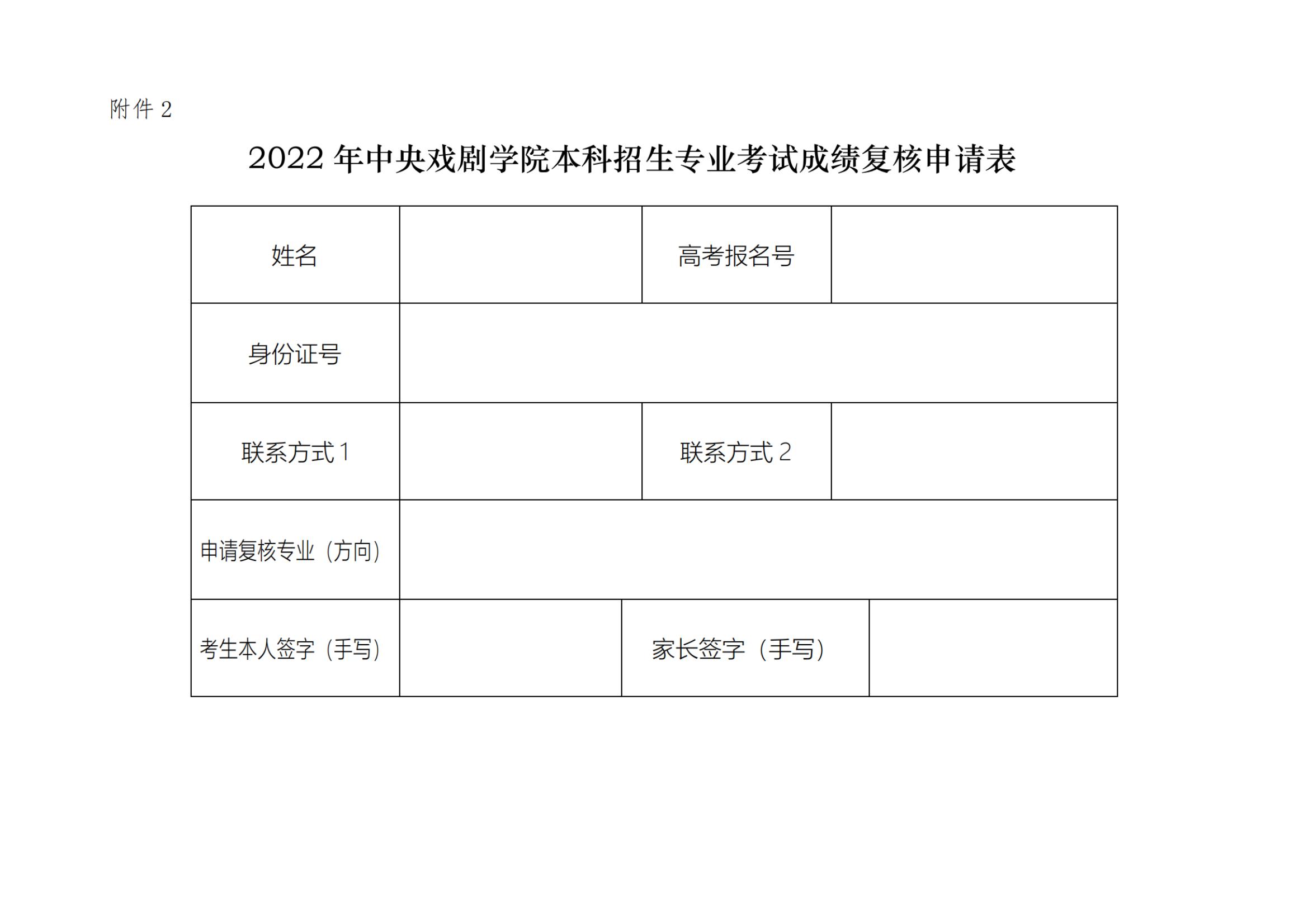 六、公示期间可进行成绩复核,逾期不再受理。考生可将《2022年中央戏剧学院本科招生专业考试成绩复核申请表》(附件2)及考生本人身份证正反面扫描件(以JPG格式作为邮件附件)发送至zhaosheng@zhongxi.cn,我院将于4月29日前统一回复。