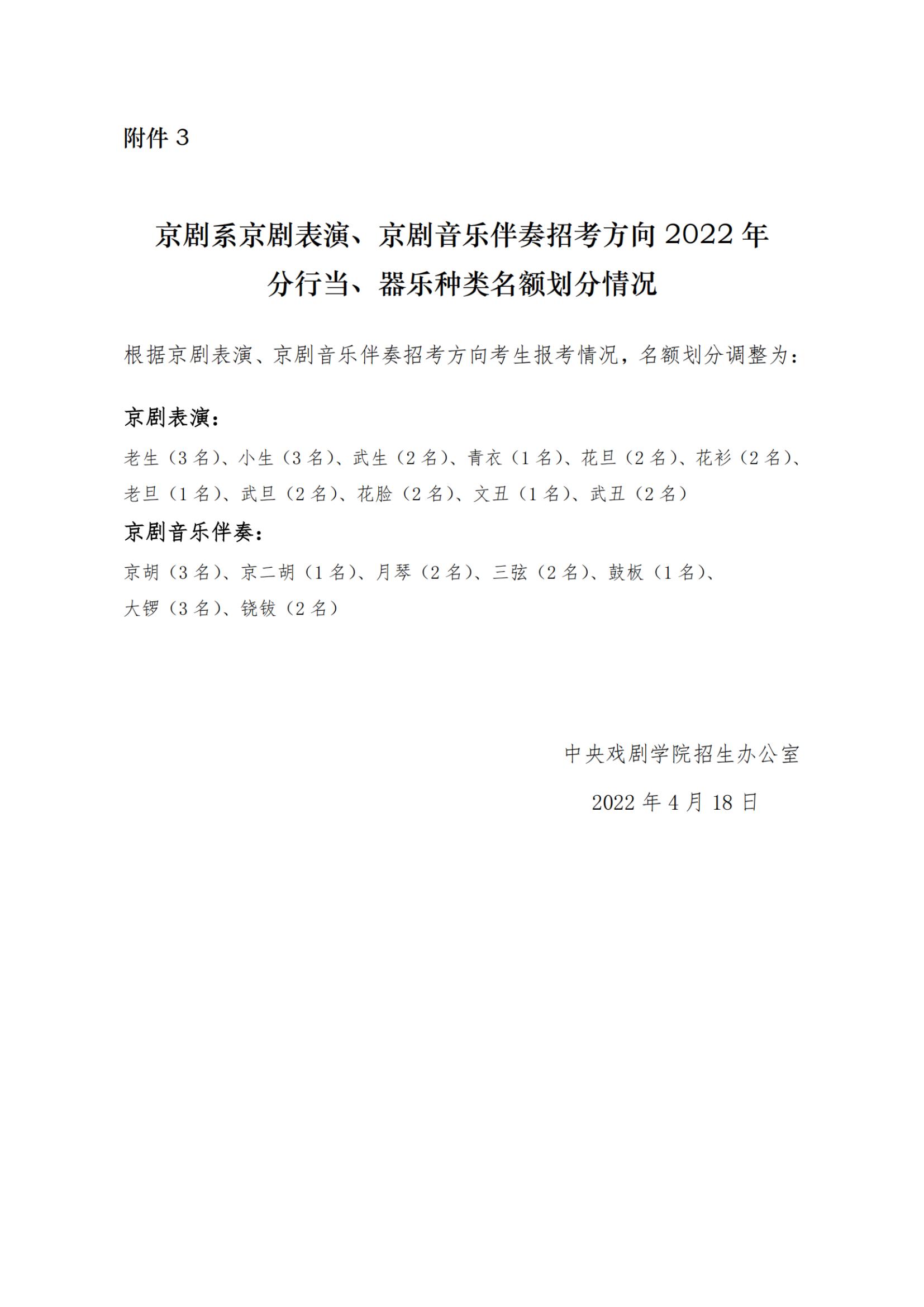 七、京剧系京剧表演、京剧音乐伴奏招考方向2022年分行当、器乐种类名额划分情况见附件3。