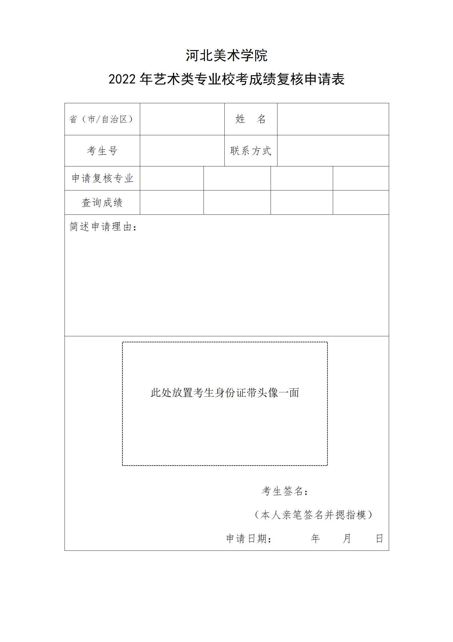 附件:河北美术学院2022年艺术类专业校考成绩复核申请表
