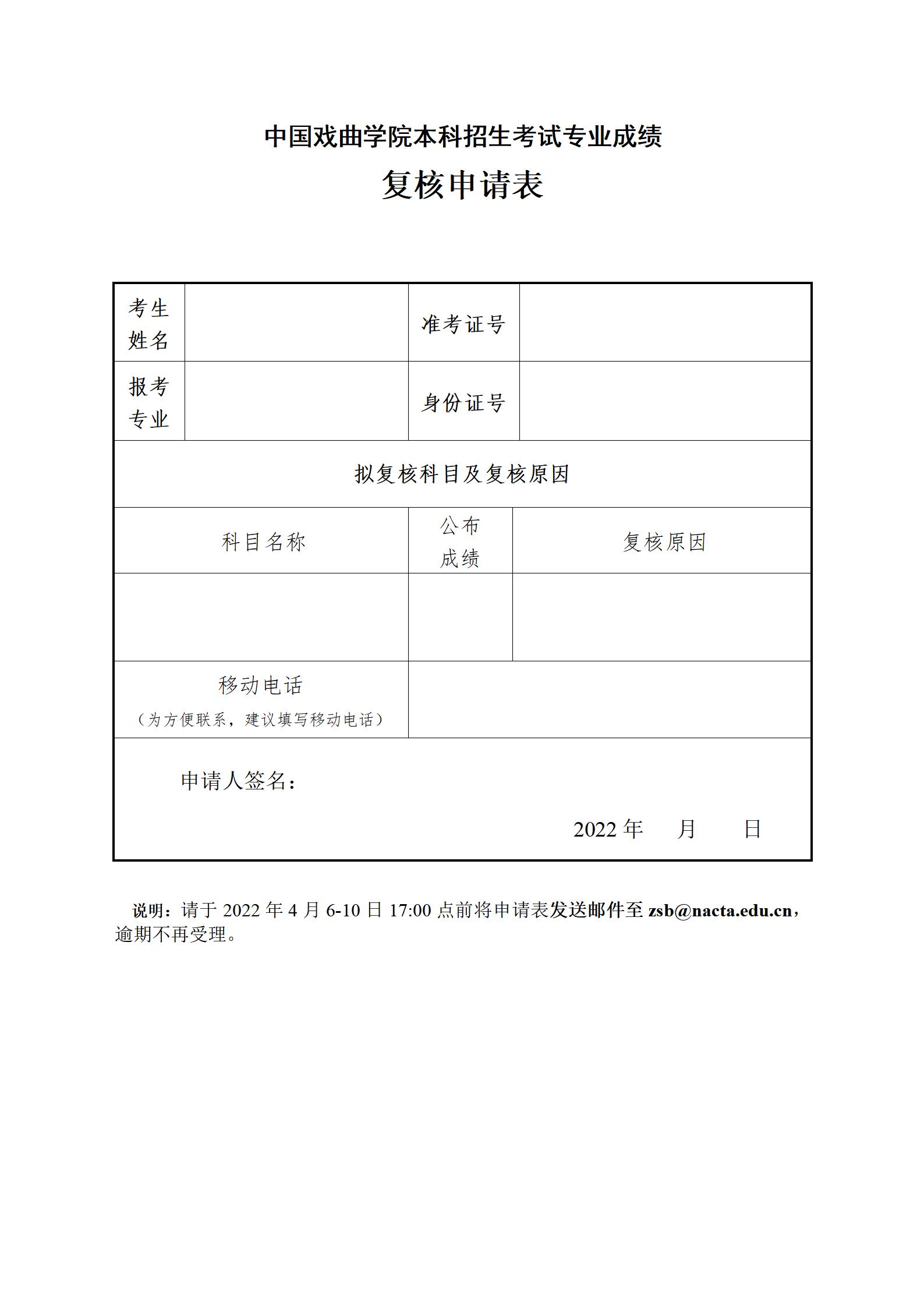 中国戏曲学院2022年本科招生专业考试合格成绩已公布,成绩查询网址为https://zs.nacta.edu.cn/f/enr/search 点击“专业合格查询入口”输入身份证号即可查询,请合格考生自行打印专业合格证并保存,截止时间为4月30日,我院不再寄发纸质专业合格证。专业考试不合格成绩将于4月6日-10日查询,对成绩有异议者在此期间填写中国戏曲学院本科招生专业考试成绩复核申请表并发送至招生办邮箱zsb@nacta.edu.cn,逾期不再受理。