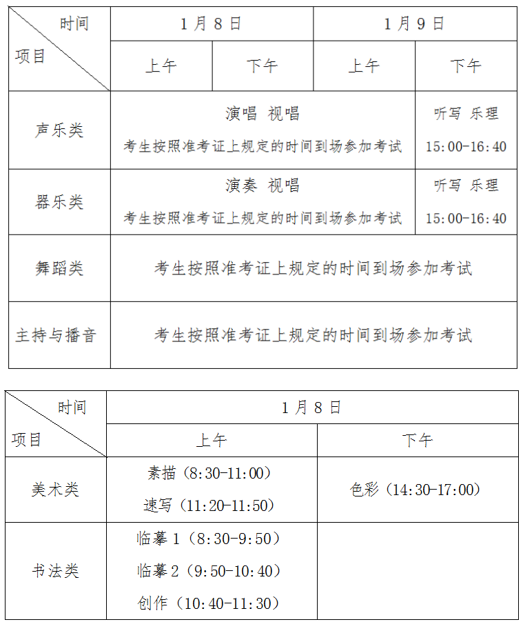 各类别考试形式、科目、内容及要求详见《艺术统考说明》。各考试类别均不进行复试。