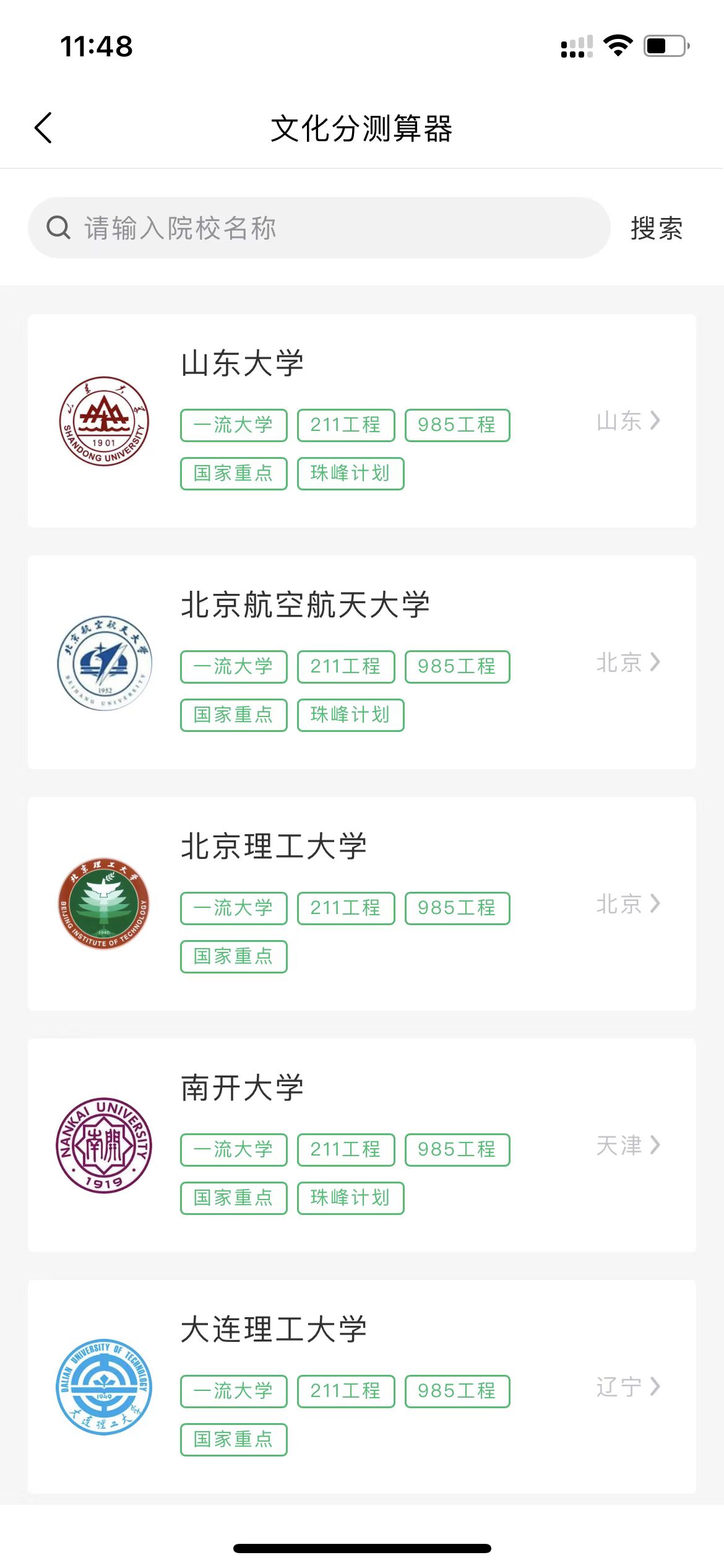 ·展示全部高校列表、本省高校列表、北上广高校列表及高校排名。