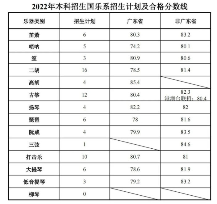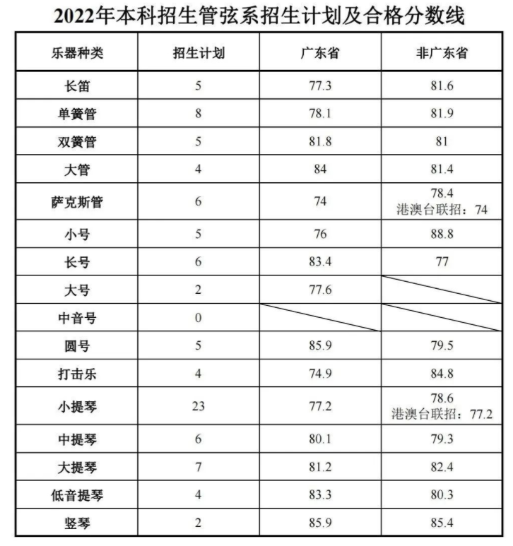 3.星海音乐学院2022年本科招生考试专业合格分数线如下图: