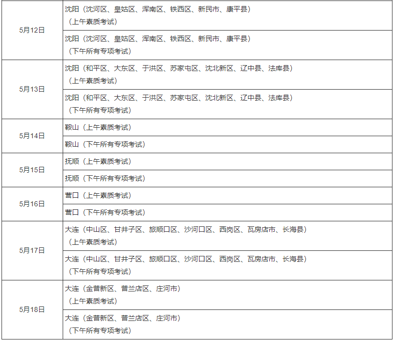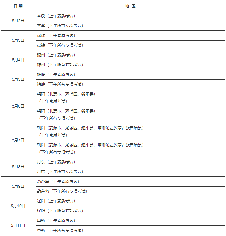 附:辽宁省2022年普通高校招生体育专业考试日程安排