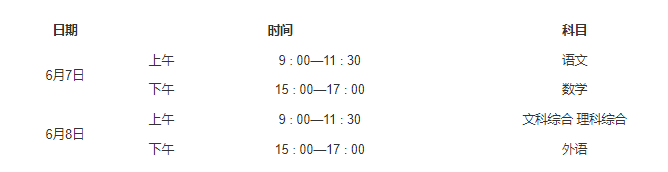 第十二条 全国统考于6月7日至8日举行。各科目考试时间如下: