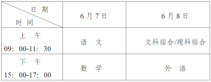 理工类:语文、数学、外语、理科综合(物理、化学、生物);文史类:语文、数学、外语、文科综合(政治、历史、地理)。