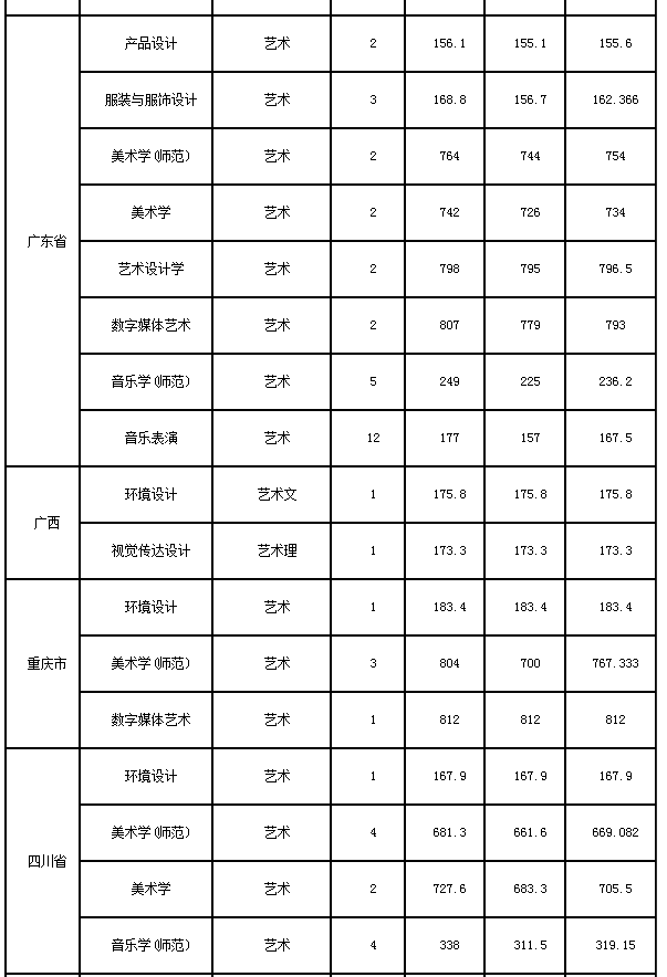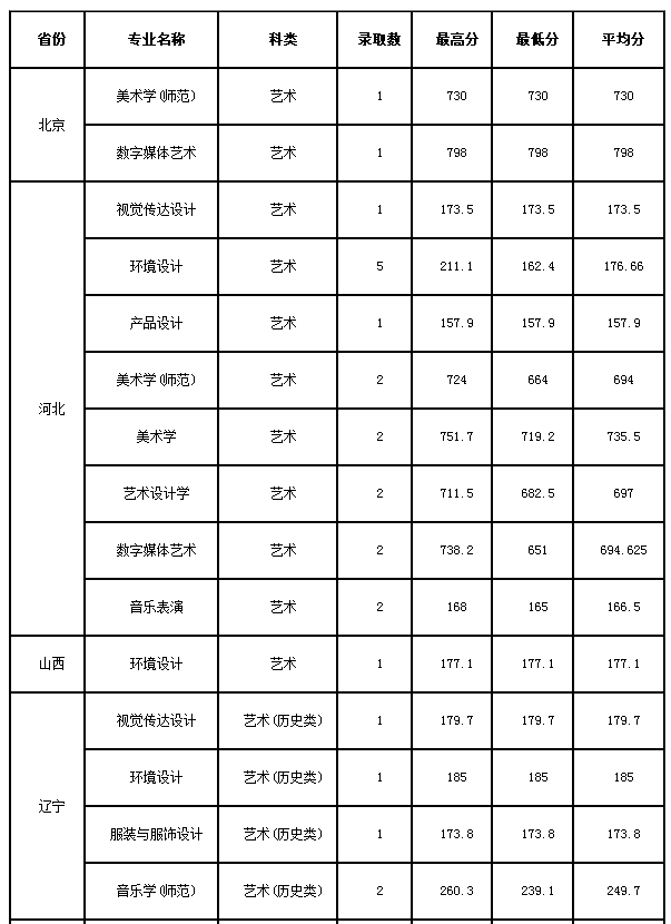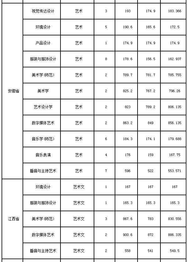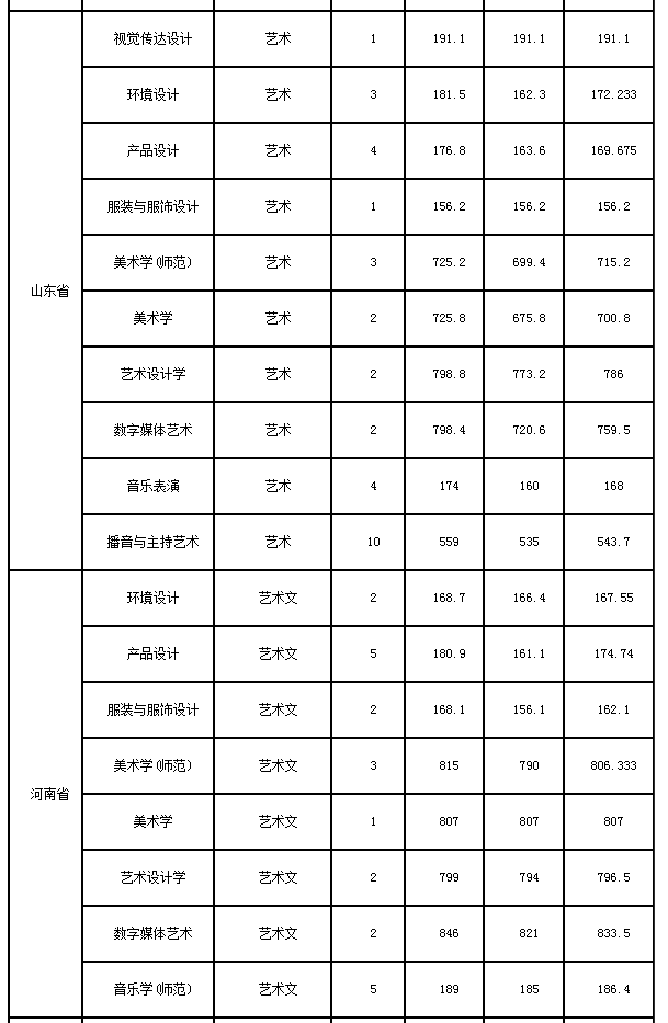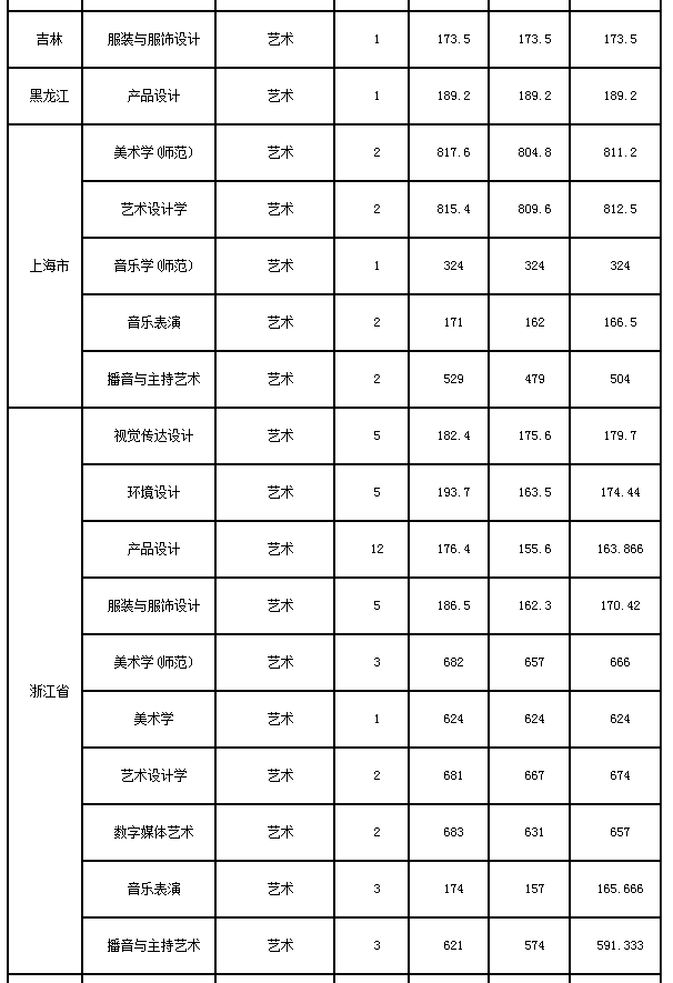 艺术类招生的专业有美术设计类和音乐类专业,全部采取统考成绩录取,录取原则按照各省投档规则进行投档。