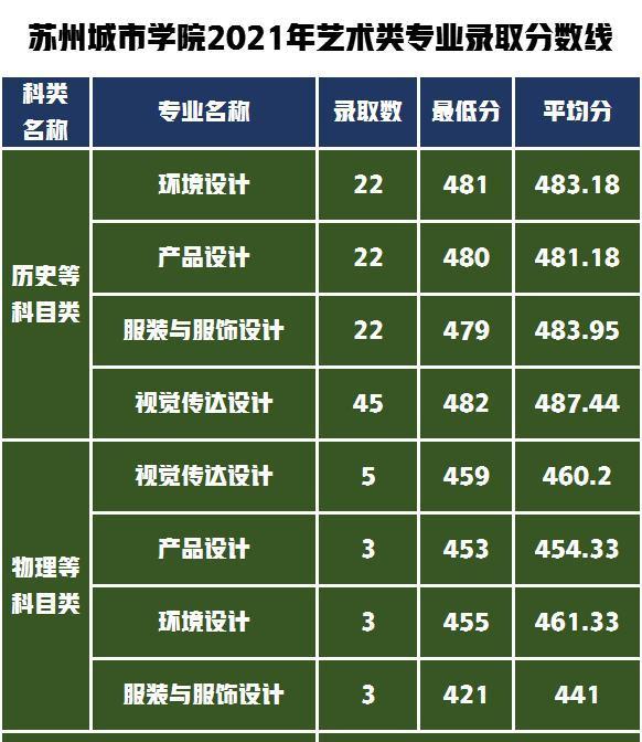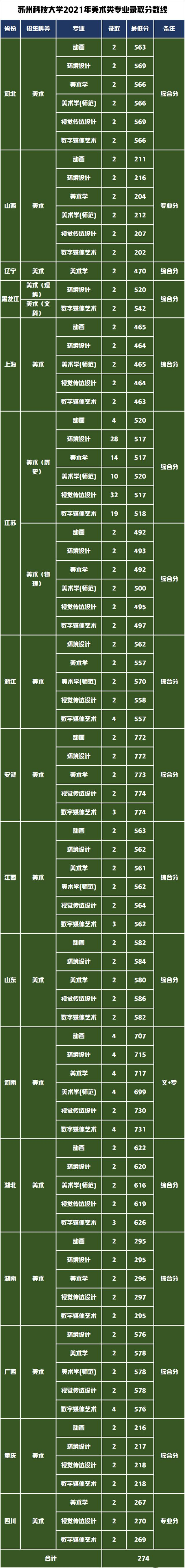 附2021年苏州大学应用技术学院2021年艺术类录取分数线:
