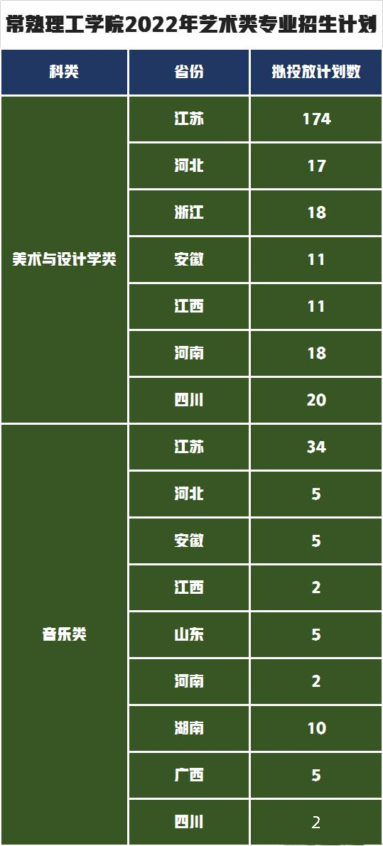 附常熟理工学院2022年艺术类专业招生计划见下表: